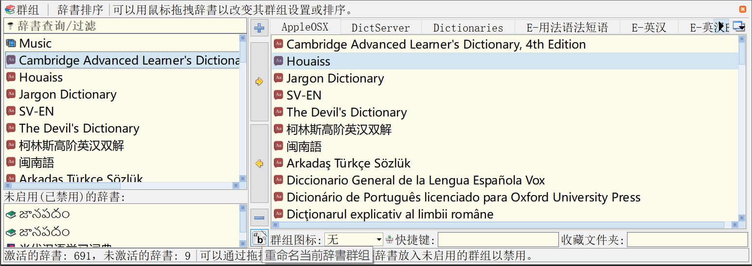 When switching from the official GoldenDict or earlier versions of ++OCR to the latest version of GoldenDict++, you have to regroup all your dictionaries due to compatibility issues with the configuration files, which is tedious and time-consuming. However, if you have normally grouped your dictionaries by dir (under content) when you add them, regrouping them will be a no-brainer.